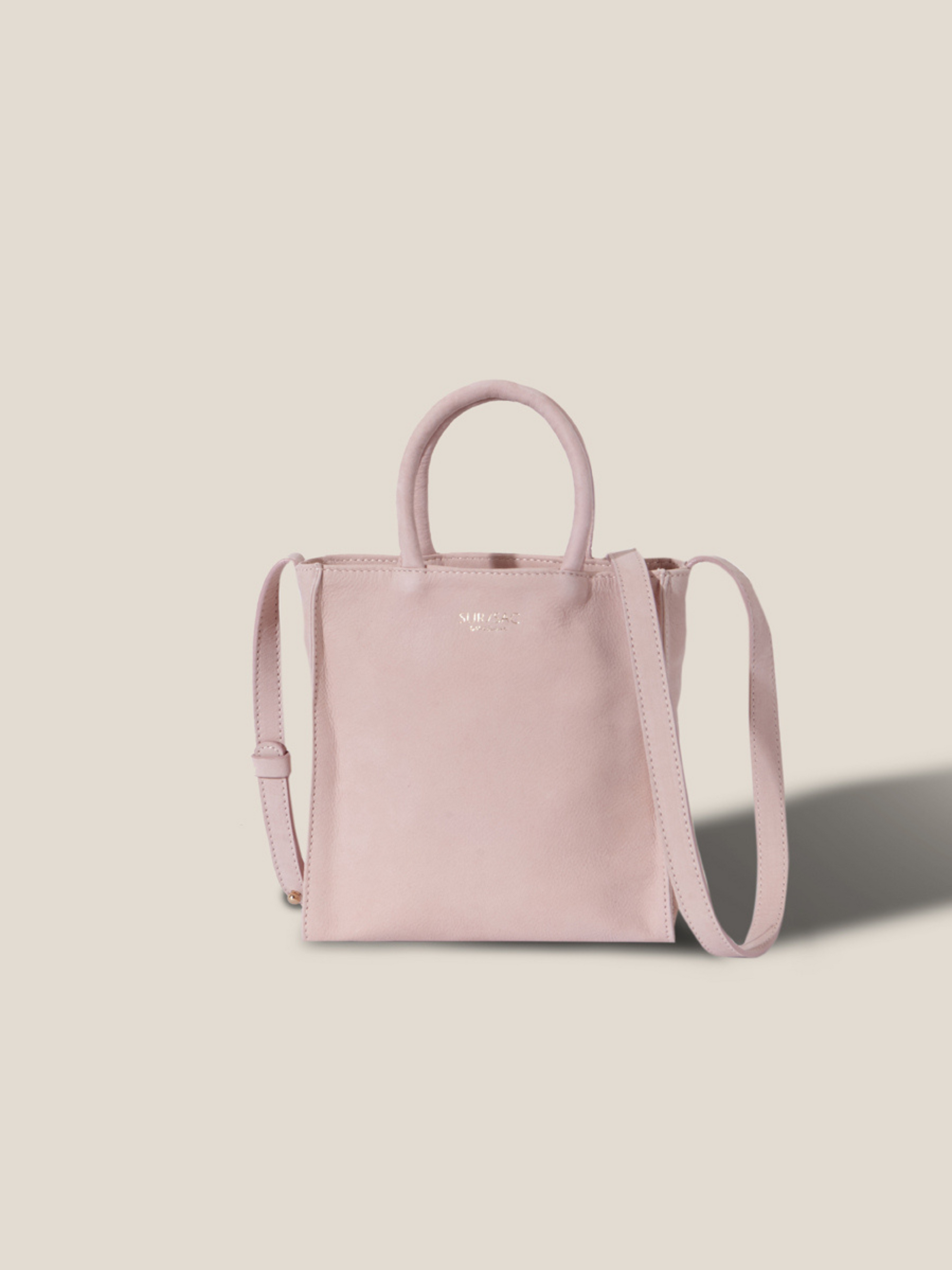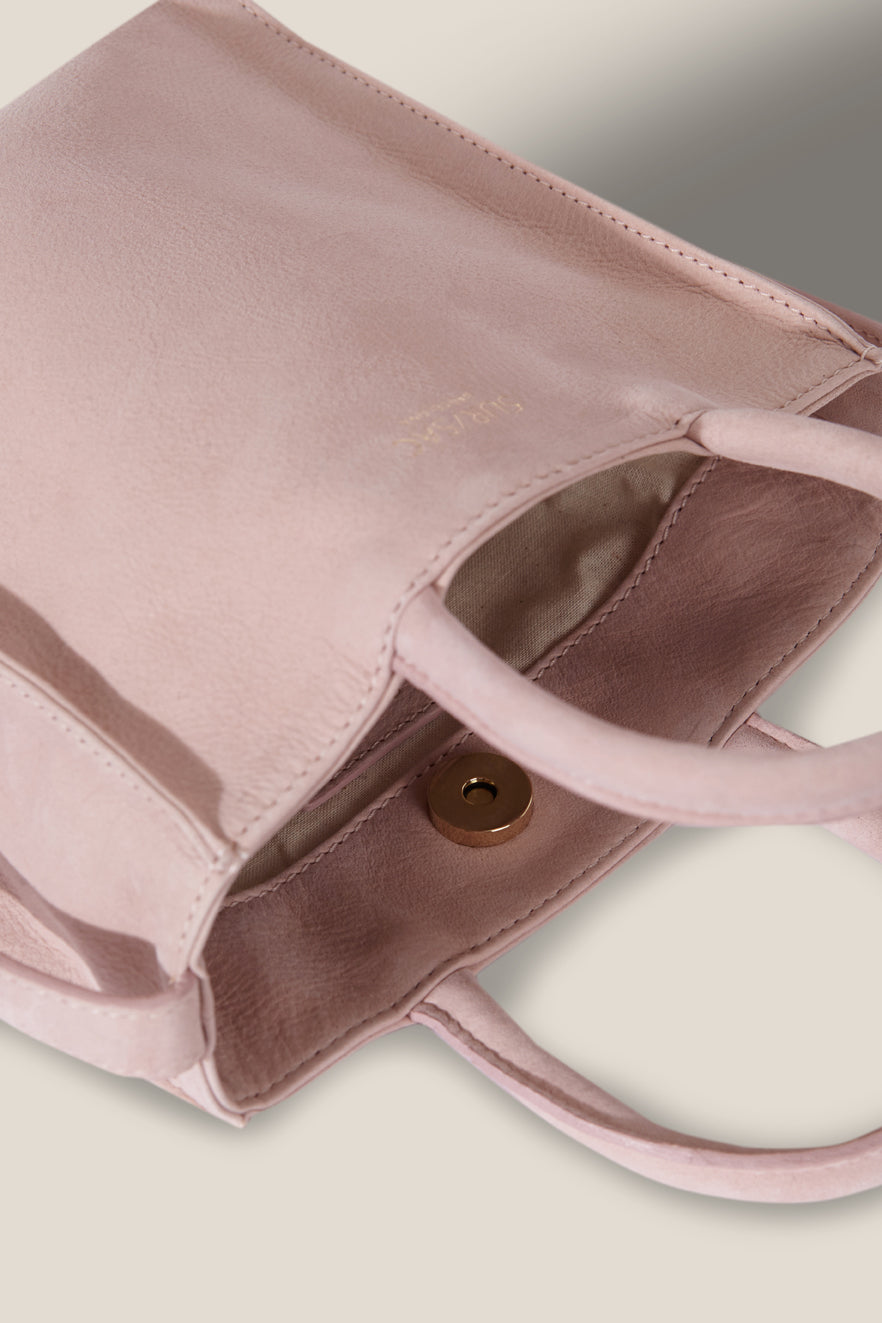 Bag made of cowhide. The bag closes with a light gold tone clip. Interior leather pocket matching the bag. Adjustable shoulder strap with light gold cufflinks in 3 sizes, measuring 120 cm. 100% cotton lining.