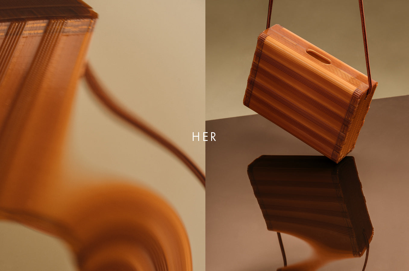 Her, es nuestra nueva propuesta, una mezcla entre futuro-presente, entre artesanía y la última tecnología digital aplicada al mundo de la moda. Bajo este concepto nace Her. Rediseñando un clásico, presentamos una nueva versión del modelo Valentina pero construido con la delicadeza y la precisión de un castillos de naipes a partir de 63 piezas impresas en 3D y ensambladas manualmente.
