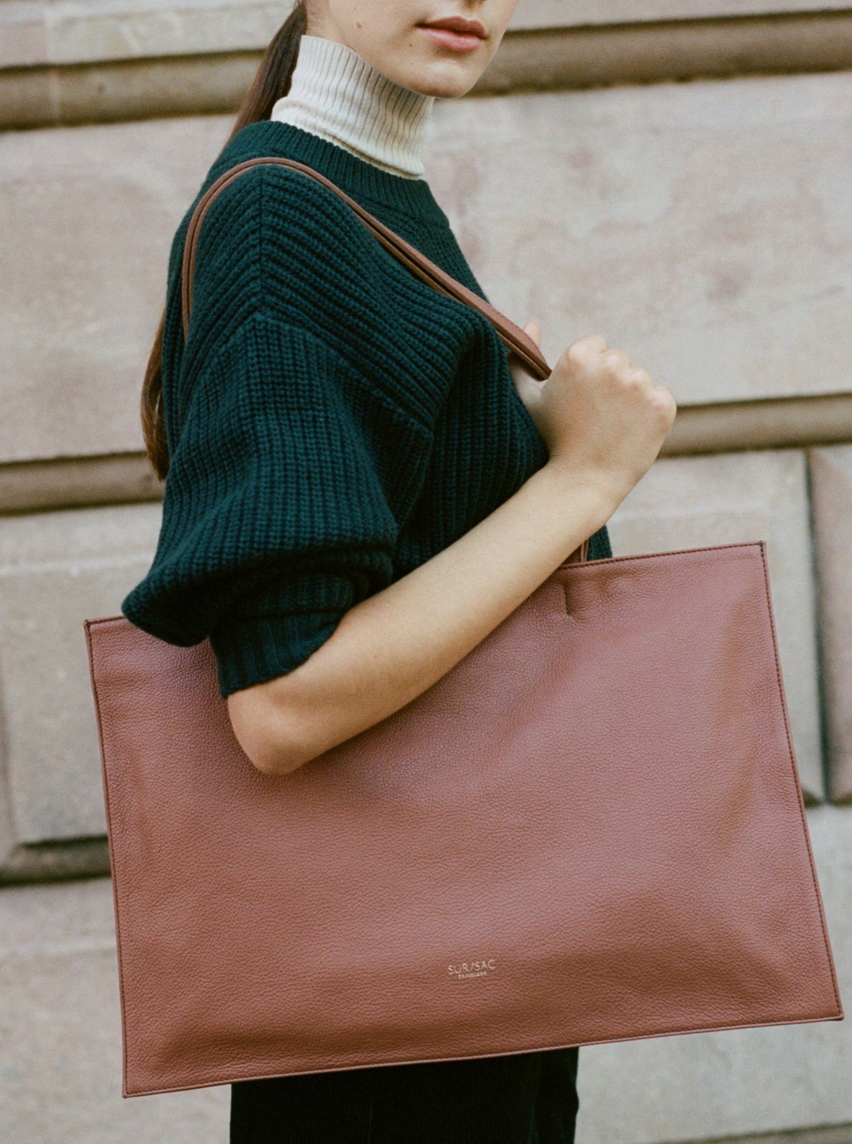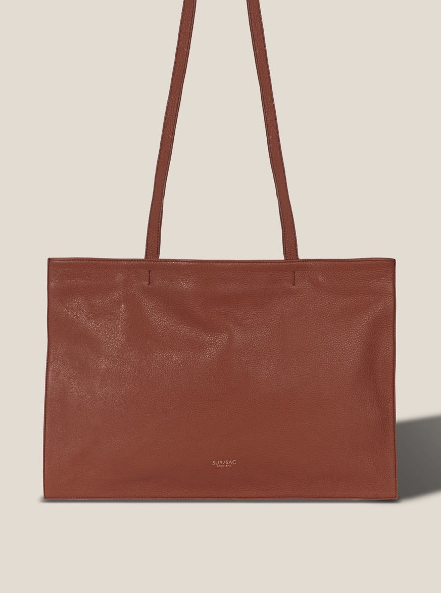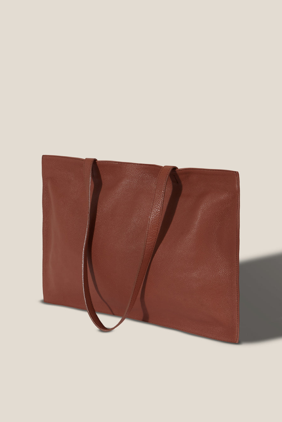 Bolso extraplano realizado en piel de vacuno en color tabaco.