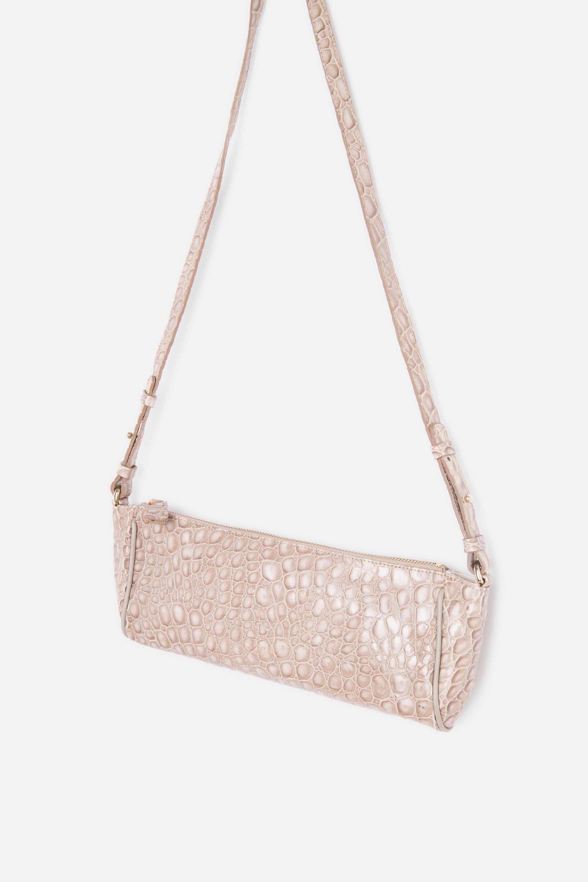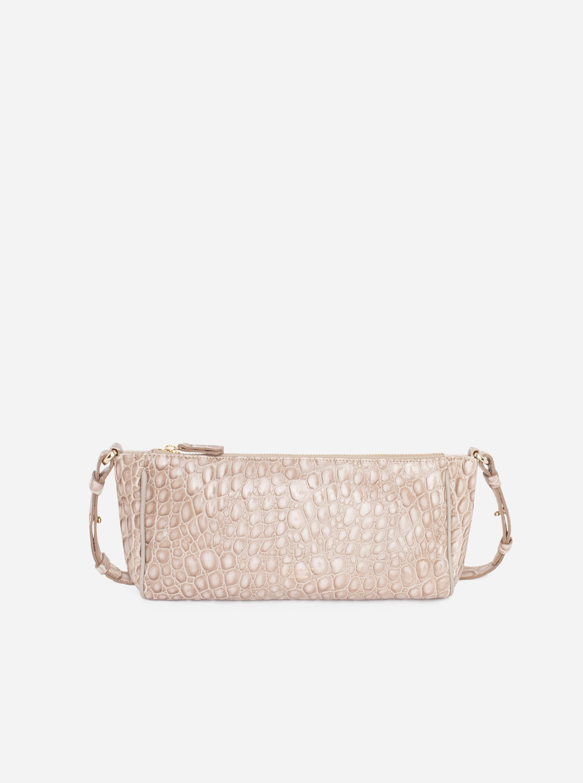 Bolso en piel de vacuno con grabado de cocodrilo en color arena .