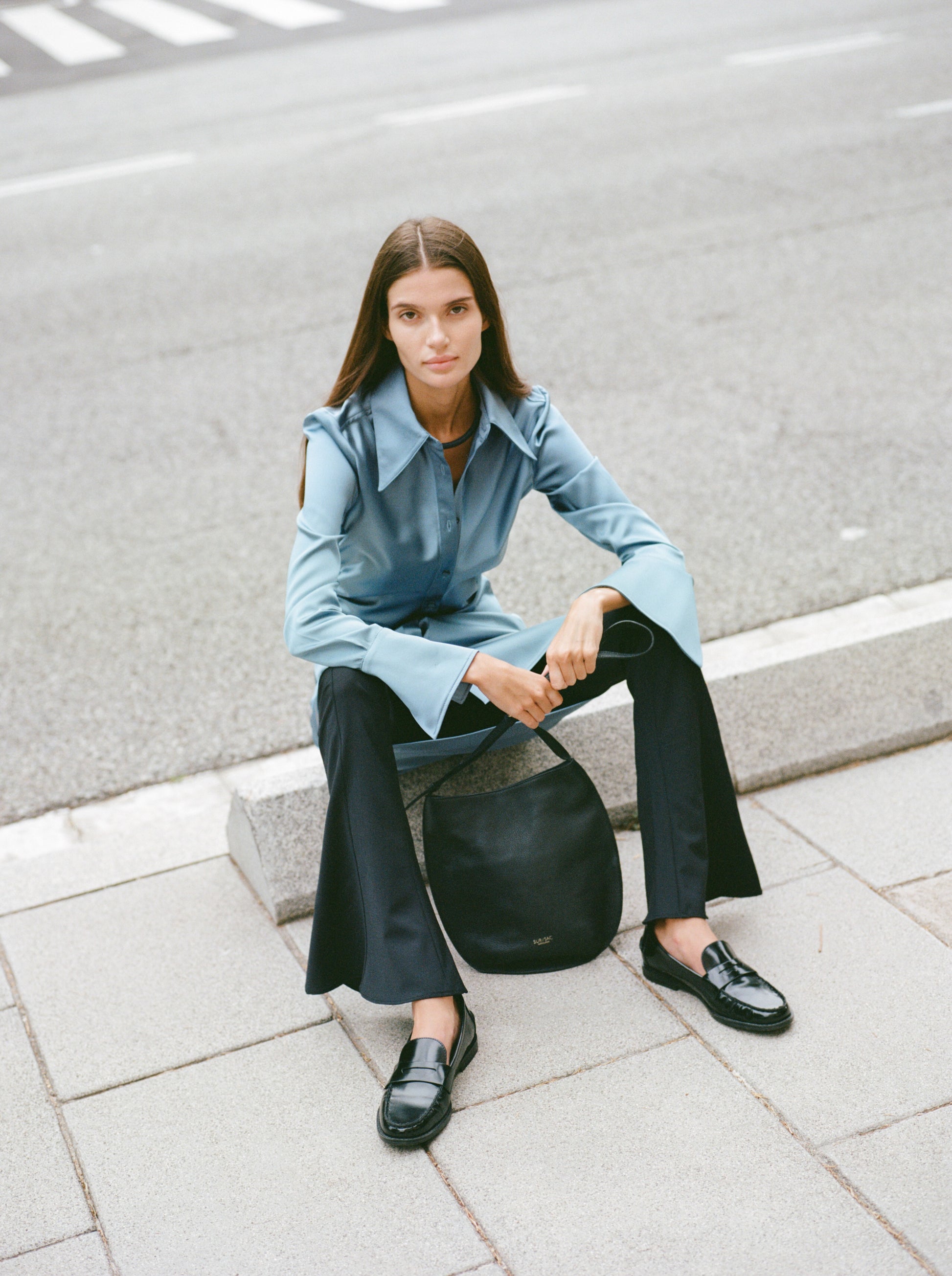 Bolsillo interior en piel de vacuno al tono para teléfono móvil y bolsillo interior con cremallera .