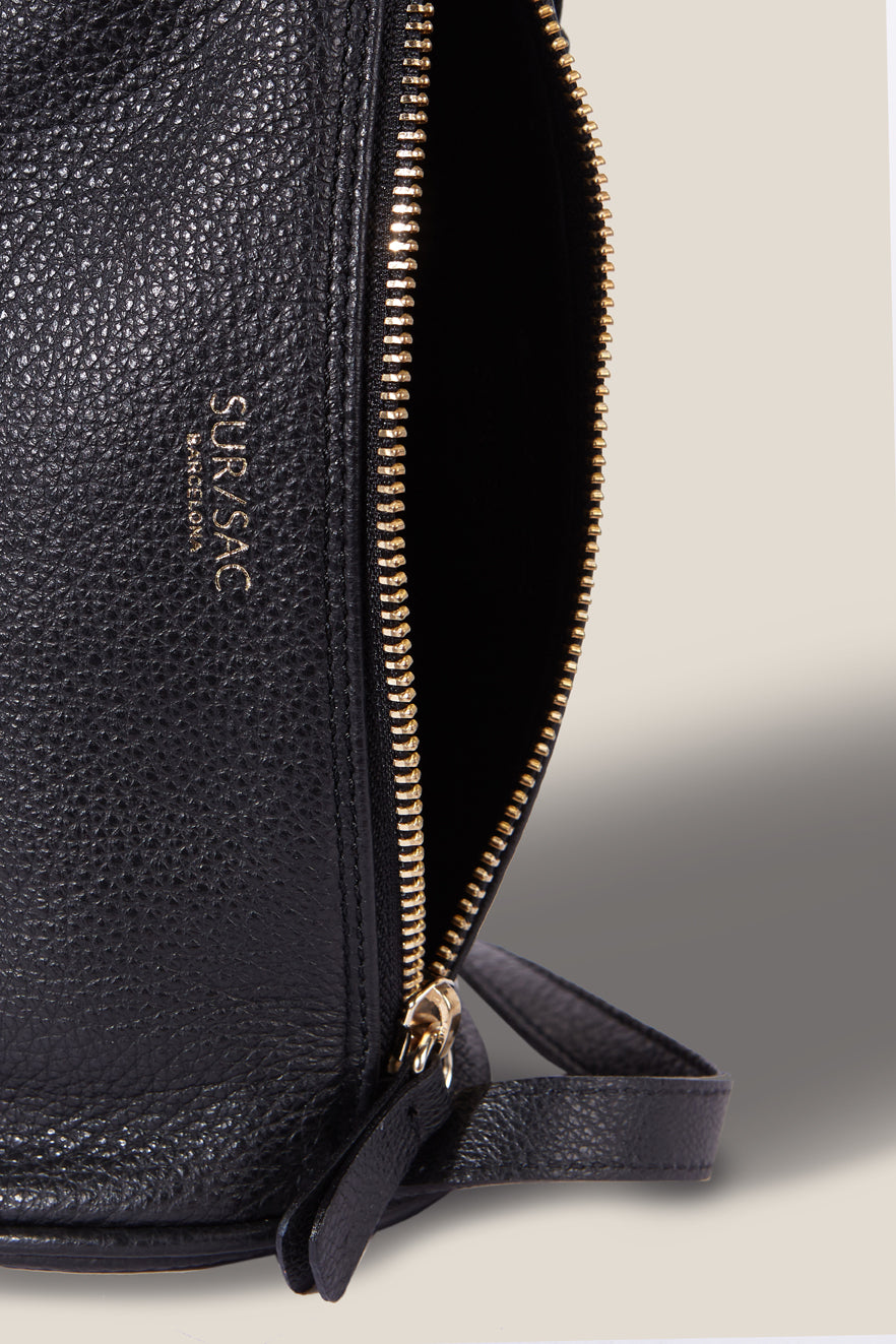 El bolso se cierra con cremallera. Asa bandolera regulable con gemelos en oro claro en 3 medidas, medida 120 cm.